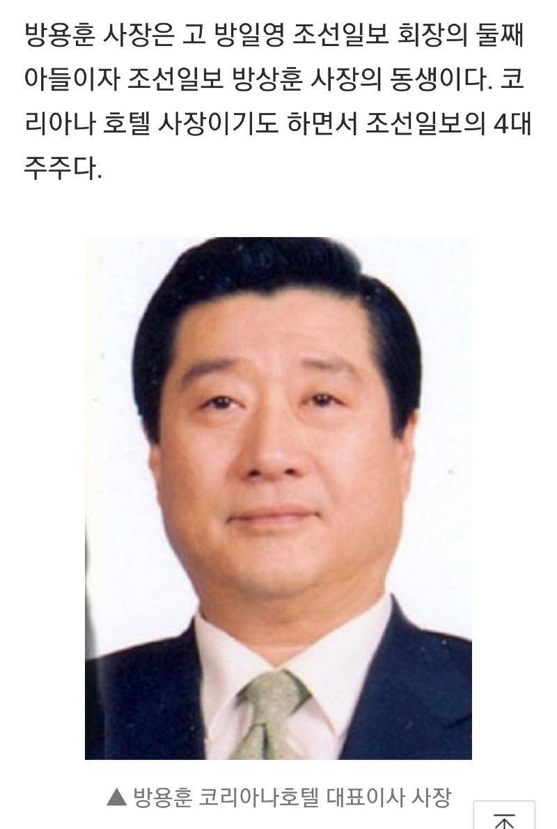방용훈 사장은 방상훈 조선일보 사장의 동생이라고 합니다! 친정에 보내려 했다는 방용훈 사장, 故 이미란씨는 왜 피멍이 들어야 했나? 지지자 향해 손 인사·미소…mb, 구속 349일 만의 귀갓길. 빈소는 신촌세브란스병원에 마련됐고 발인은 오는 20일이다. 방용훈(方容勳, 1952년 ~ )은 대한민국의 기업인이다.